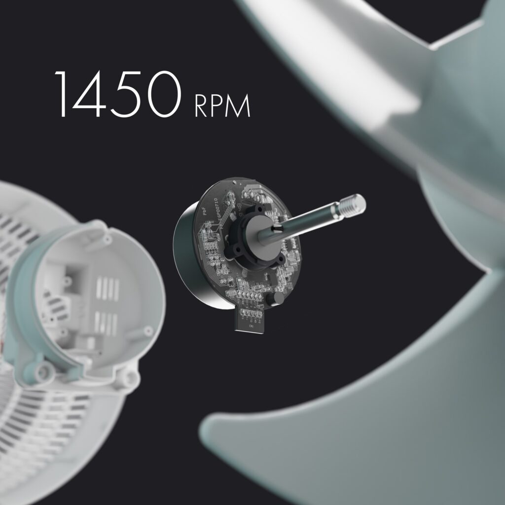 Díky hlubokému designu lopatek je poháněn větší objem vzduchu dále do místnosti. Sefte® dodává úžasných 19 m3 vzduchu za minutu, čímž je zajištěno dokonalé osvěžení vzduchu v místnosti.