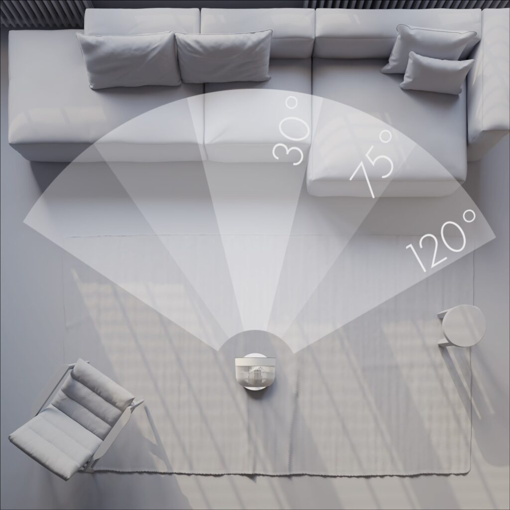 Díky této jedinečné technologii můžete vybírat ze 3 různých úhlů oscilace pro přesnější zacílení proudu vzduchu. Úzký úhel dodává soustředěný proud vzduchu přesně tam, kam potřebujete. Střední úhel je ideální pro větší plochy. Široký úhel zajistí pokrytí celé místnosti.
