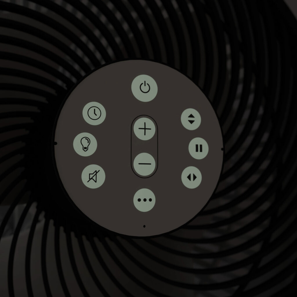 Dálkový ovladač je vybaven nočním podsvícením, díky kterému bez problému uvidíte ovládací tlačítka i v úplně tmě. Pomocí magnetu můžete ovladač uchytit v středové části hlavy ventilátoru, kde ho budete mít vždy po ruce.