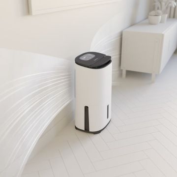 Tichý a úsporný kompresorový odvlhčovač Arete® Two si hravě poradí s nadměrnou vlhkostí a kondenzací vody, čímž brání růstu plísní a šíření zatuchlého vzduchu v interiéru. Ideální pro použití v domácnosti, dílně, garáži nebo v karavanech.
