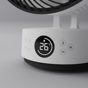 Pro rovnoměrné osvěžení je stolní ventilátor Sefte® vybaven automatickou horizontální a vertikální oscilací. Můžete je používat nezávisle pro přesnější zacílení proudu vzduchu nebo společně pro zajištění cirkulace vzduchu v celé místnosti. K dispozici je také funkce „pauza“, která umožní zastavit pohyb ventilátoru v libovolném bodě a zaměřit vzduch přesně tam, kam potřebujete.