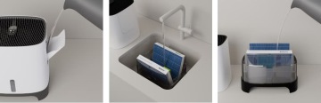 Unikátní design nádržky umožňuje snadné doplňování vody přímo v umyvadle nebo ve dřezu. Vodu můžete do nádržky nalévat i přímo z nádoby nebo využít boční plnicí klapku, která umožňuje pohodlně doplňování vody i během provozu zvlhčovače.